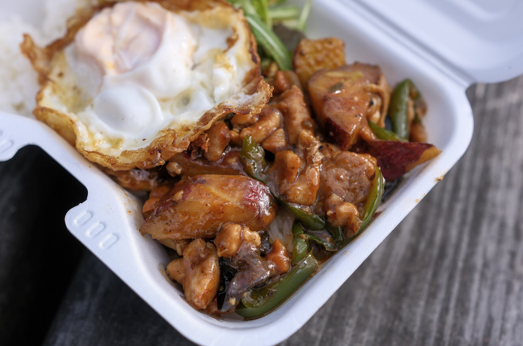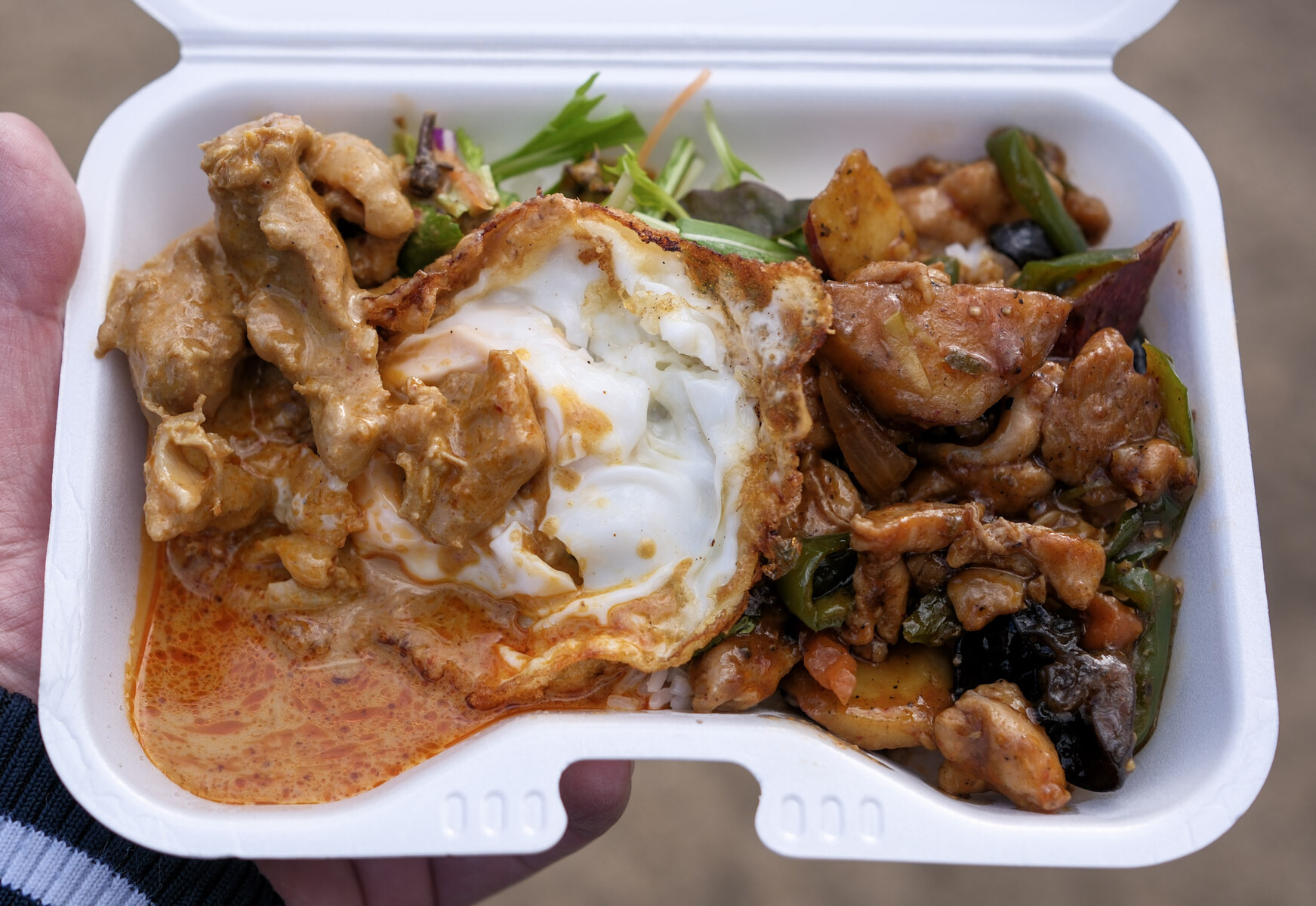 キッチンカーで週に4〜5回、福岡市内で出店しているタイやマレーシア料理の【万歳食堂】。キッチンカーと言うジャンルを無視しても相当大好きで友達にもお勧めしてるお店。