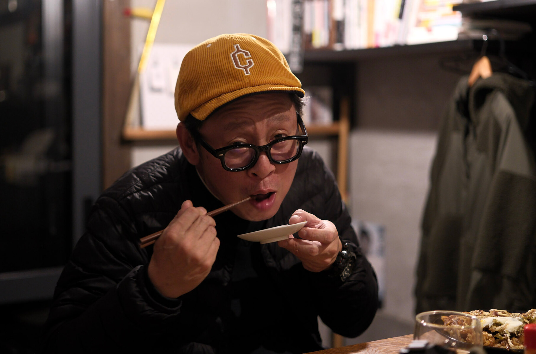 超常連のジロウちゃん。お好み焼き食べてた。