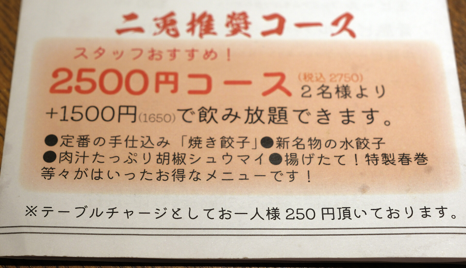 コロナ禍の時にランチ営業されてた時には特に頻繁に来てた気がするが久しぶりになった。餃子や焼売、そして担々麺が売りの中華料理店。深夜2時まで営業しているので2次会と言わず3次会でも楽しめるお店。