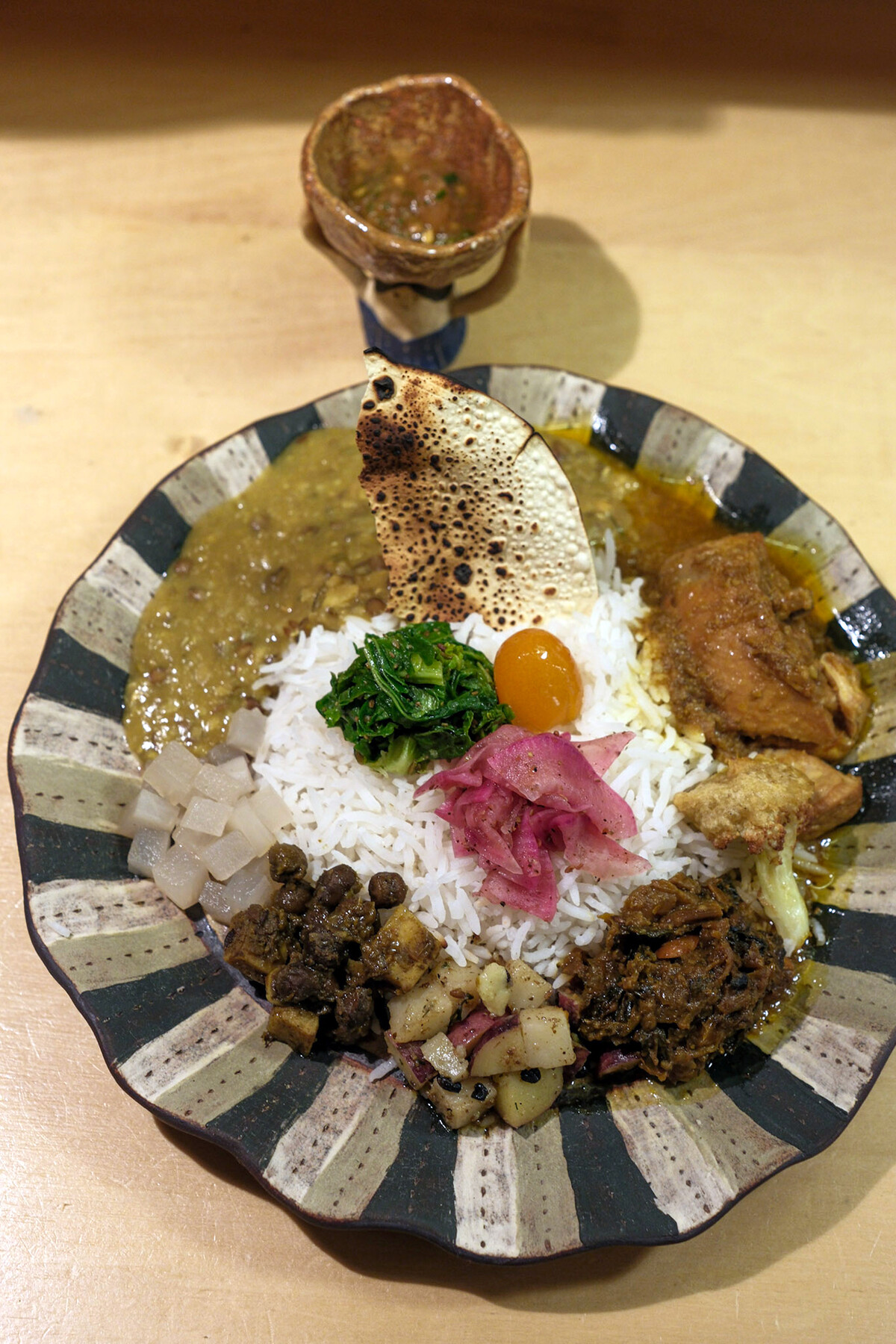 ナガノさんとは奥様と二人でリヤカーによる移動販売【おむすびひばり】というおにぎり屋さんをされてる時に知り合った。その後奥様のご病気の療養のためにしばらくお休みされてたんだけど、この度ずっと勉強されていたカレー作りの仕事を選ばれたそうだ。当面は「カレーとうつわの会」としてナガノさんのカレーを奥様が作られて器で楽しめるという活動をされるそうだ。屋号は【ピロカレー】。
