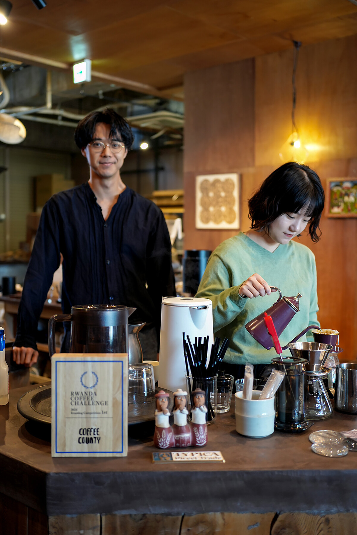 翌朝10時OPEN の【COFFEE COUNTY 久留米本店】でエチオピアのアイス飲んで美味しかったので、ホットもテイクアウトして事務所へ。上田くんを撮ろうとしたら手前の女性にピントが合ってた(笑)