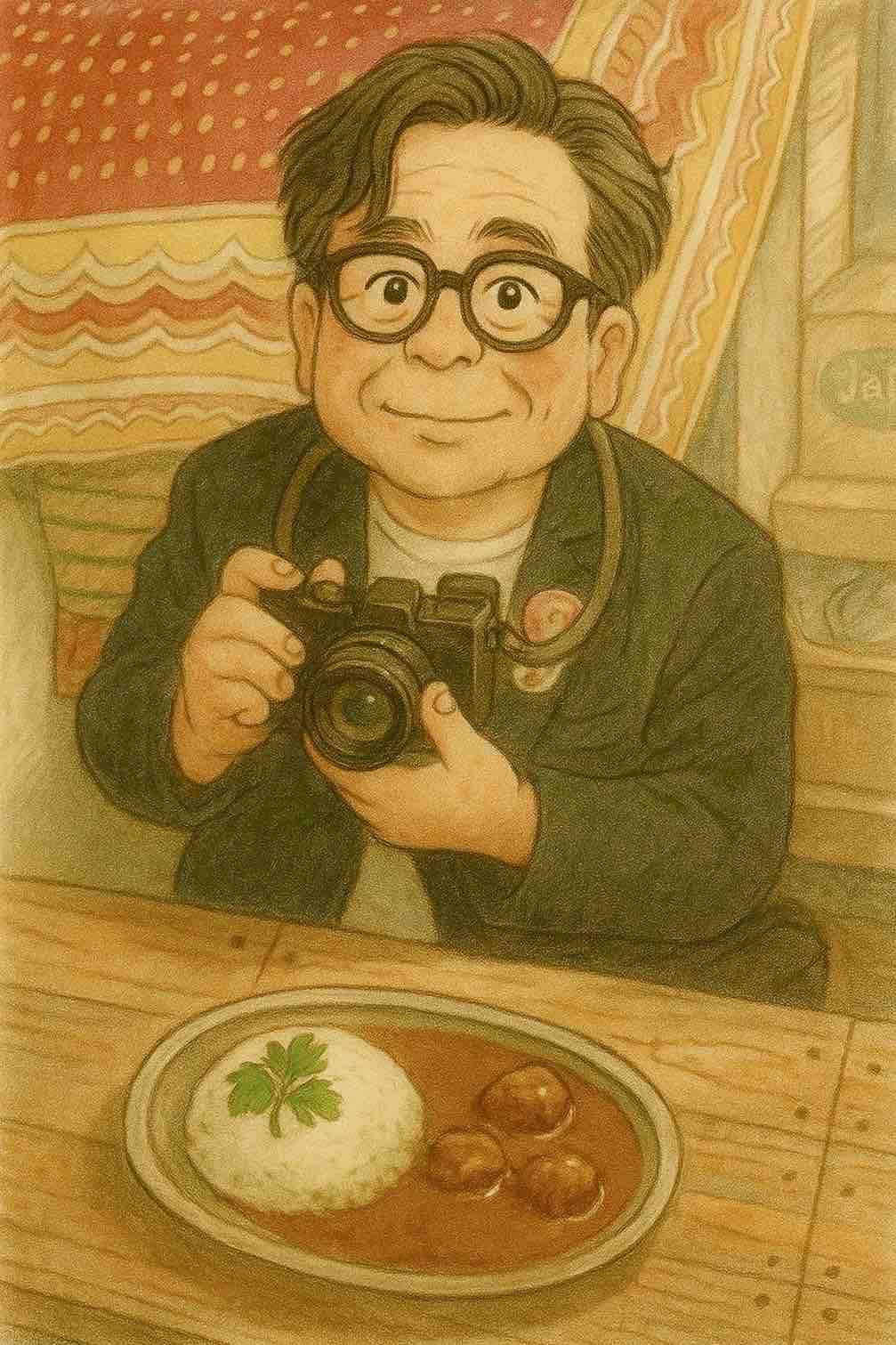店主のトシさんがカウンター越しに僕の写真を撮ってたから何するんやろうと思ってたら、後でAIで作成した似顔絵を送ってくれた。おじいちゃんやね。