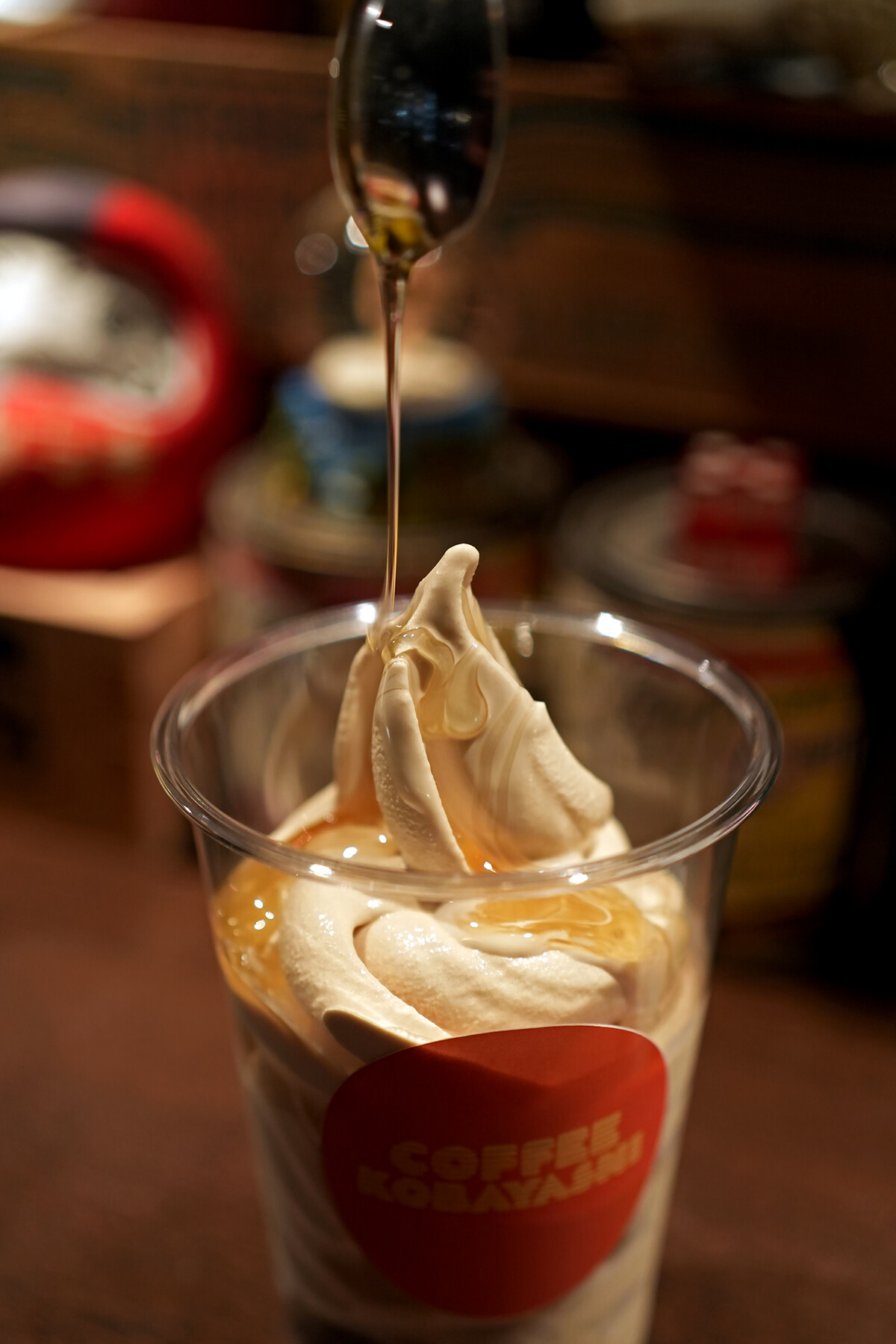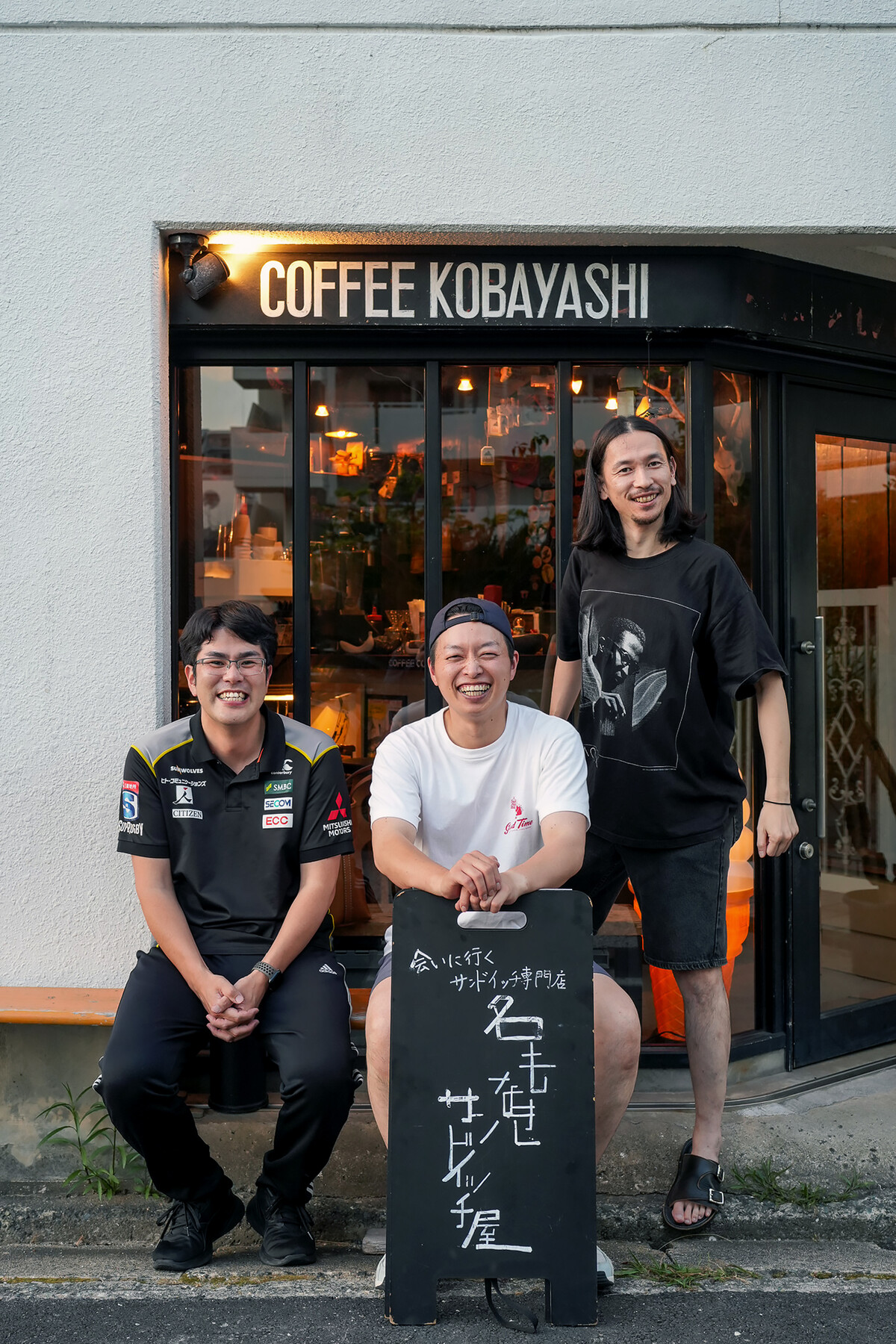 晩ごはん帰りに【珈琲小林】でくつろぎ。今日は【名もなきサンドイッチ屋】が出張販売中でした。知り合いのお客さんと3人でパチリ。人気急上昇中のコーヒーソフトクリームはハチミツのトッピングも始まる予定。それはそうとコーヒーゼリーソフトクリームはまだ始まらんのかい(笑)