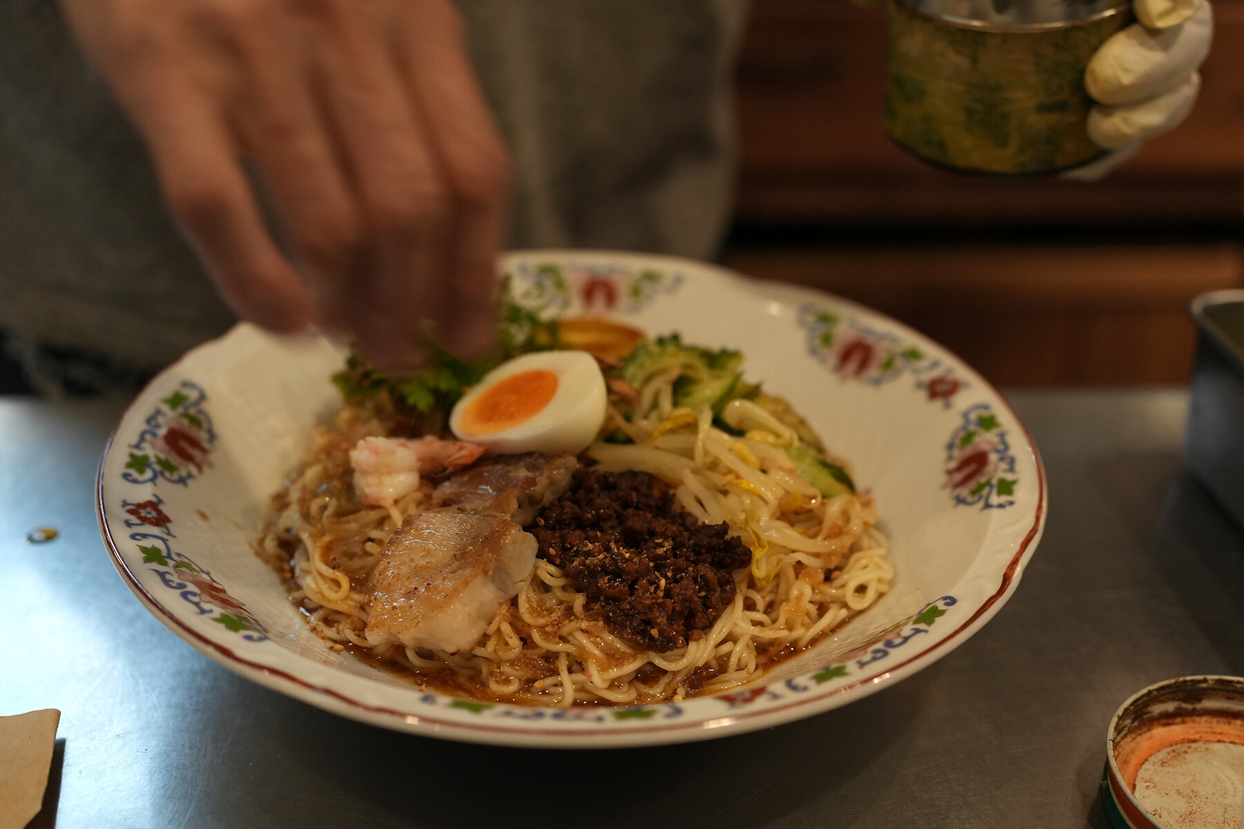 水・木・金曜日のお昼だけ【千酒万菜 うちだ産業】の法子さんがワンオペ麺ランチを営業しているので久しぶりに寄ってみた。今日は特製冷麺をいただき。
