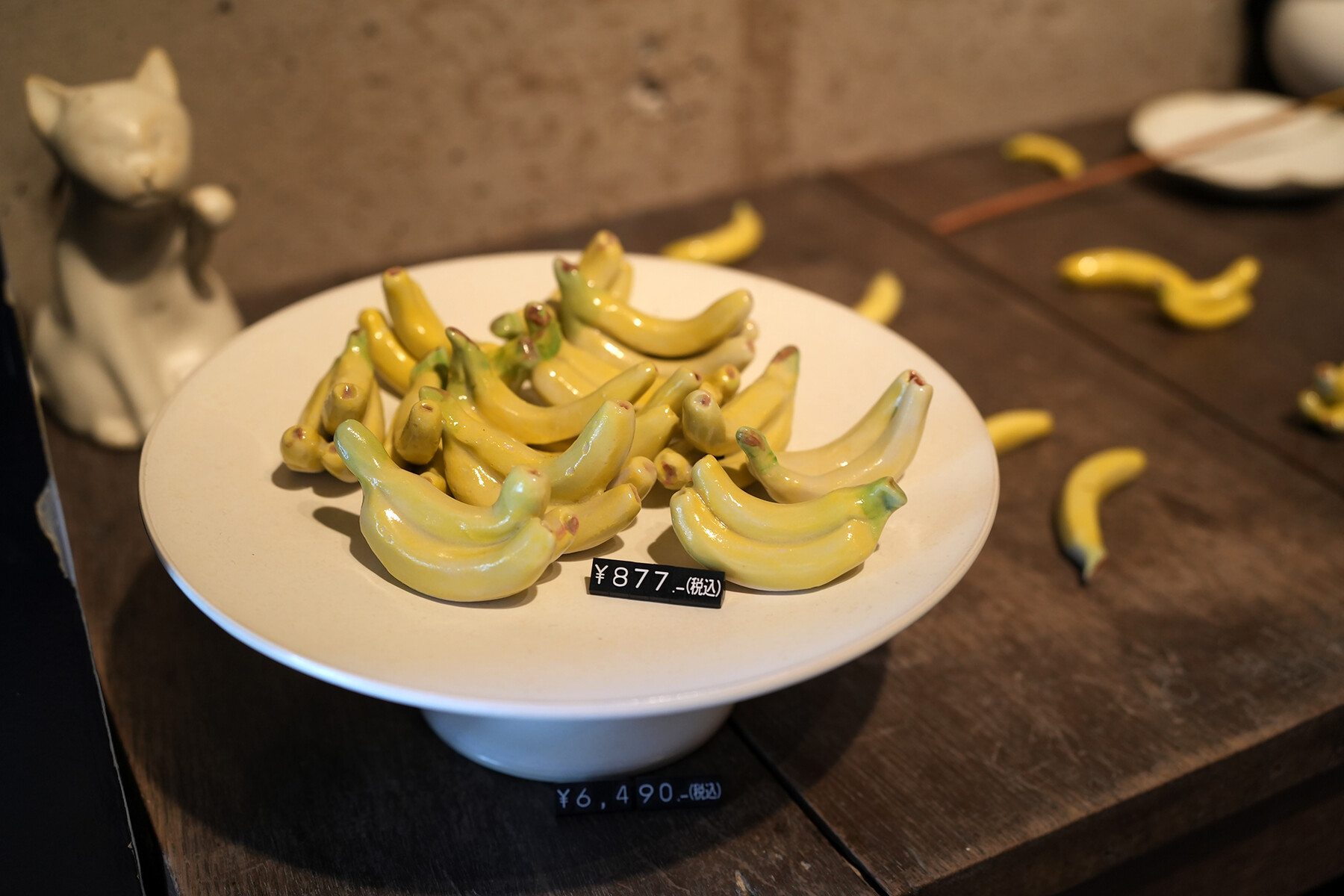 【珈琲小林】の代名詞ともいうべき”バナナ”🍌をテーマにした風鈴、箸置き、お香立てからコーヒーカップまでたくさん展示中です。かわいい。