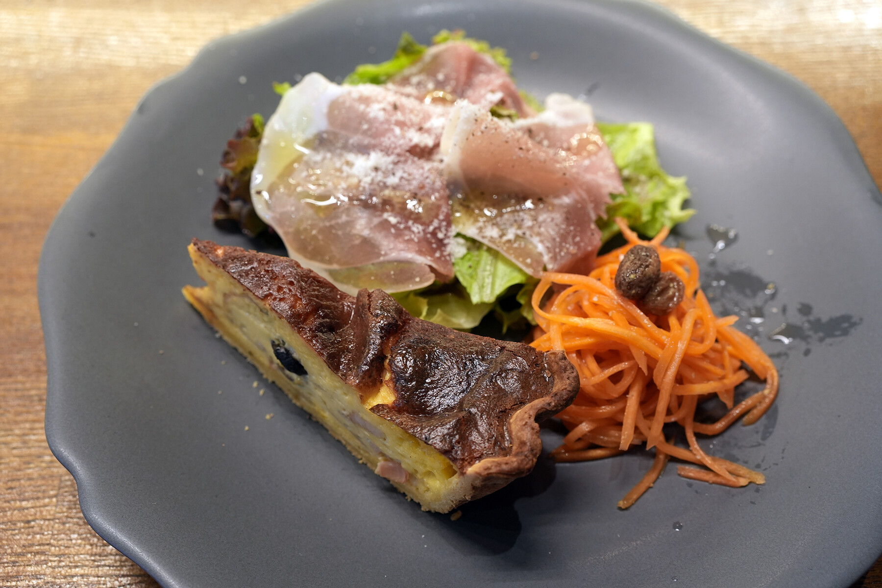 ランチは土日限定で、3種から選べるパスタ、パン、サラダ、プチデザート、ドリンク、デザートで税込1,650円。今回は+550円でサラダを前菜盛りに変更。マダムランチやファミリーランチにピッタリ。