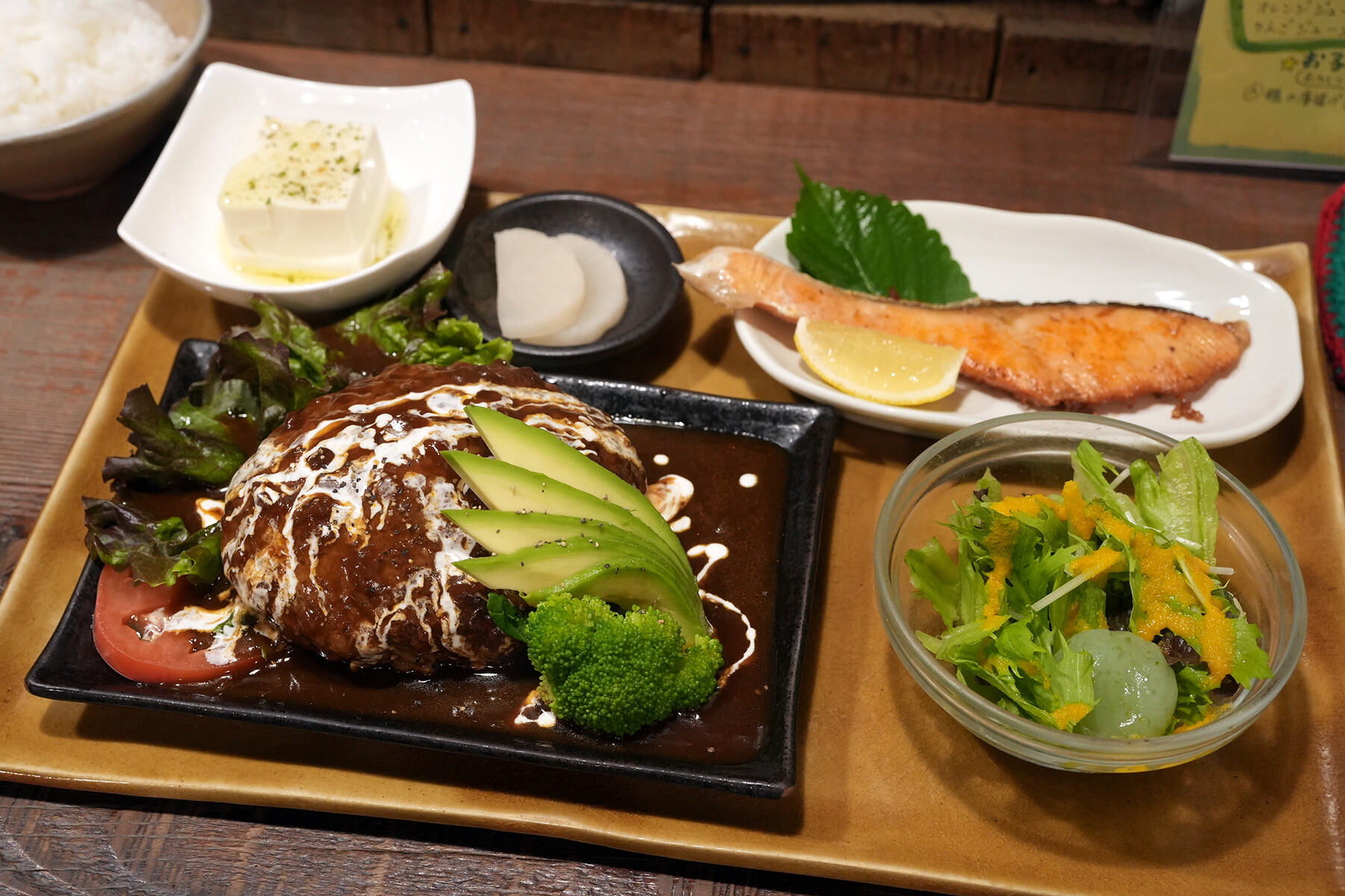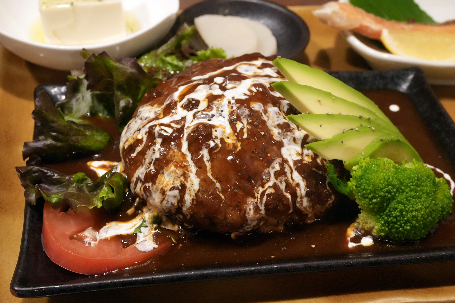 週末限定で夜営業をしている志免町【ハチミツボタン】で晩ごはん。ボリューム満点すぎやろ。ご飯少なくしてても腹一杯。多分、ここのハンバーグは一般の2倍くらいありそう。ふわふわタイプでうめ〜。