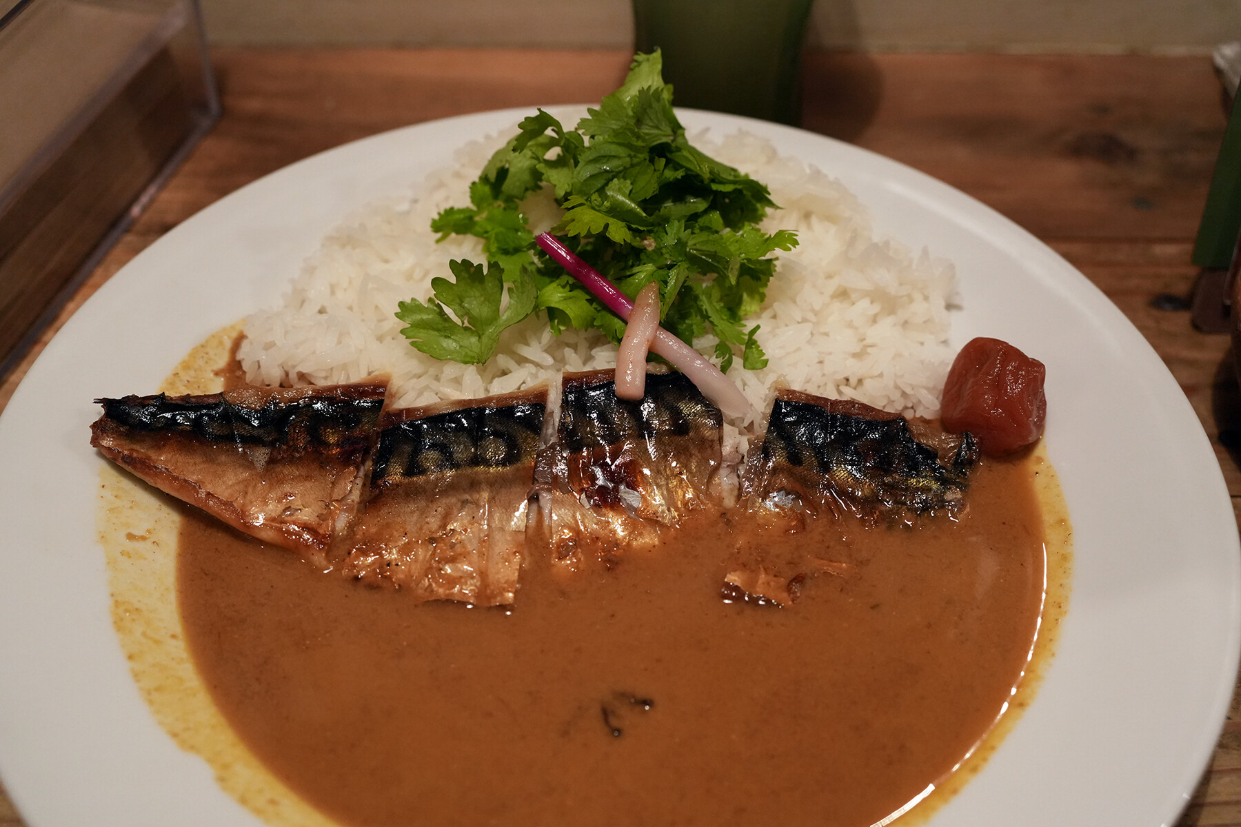 ということで篤子姉さんがワンオペで切り盛りする“夜ティキ”へ。トシさん渾身の鯖カレーは、ちょうど良い感じの刺激のある辛味サラサラココナッツスープ、注文後に焼き始める鯖、さらに梅干しとはじかみ生姜と和食っぽさも残しながらいい感じにご飯がイケる仕上がりでした。