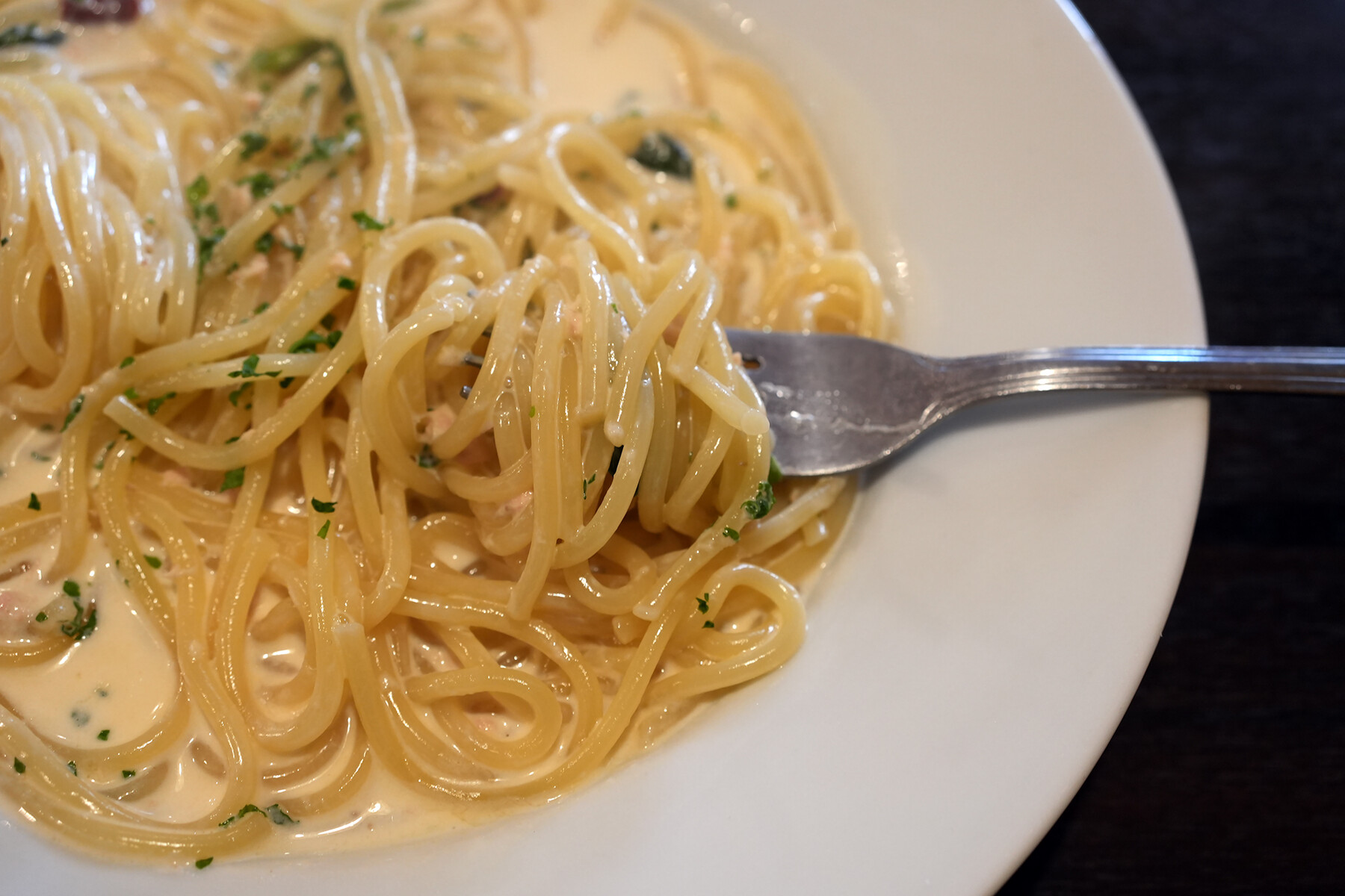 お昼に志免町【アンジェロ】でパスタランチ。パスタは3種類あるのでシャケのクリームパスタをいただき。熱々モチモチの生麺が人気。ついつい大盛りにしてしまう。 帰りに同じ並びの老舗パン屋【フレッシュベーカリーASOU】でパンまとめ買い。昔ながらのパンが人気。お昼時だったからかな、調理パンがたくさん。どけも美味しそうだった。
