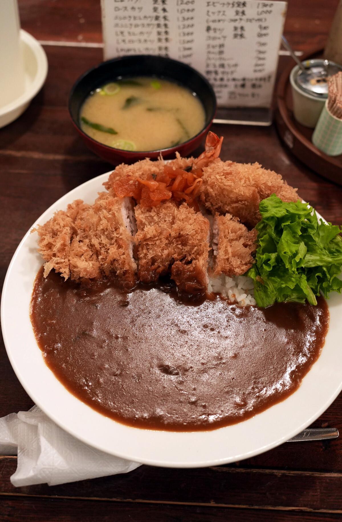 仕事帰りに玉川ビルの老舗とんかつ専門店【かつ新】でカツカレーに今日もいろいろトッピング。とんかつ屋さんと焼肉屋さんのカレーは安くて美味い。