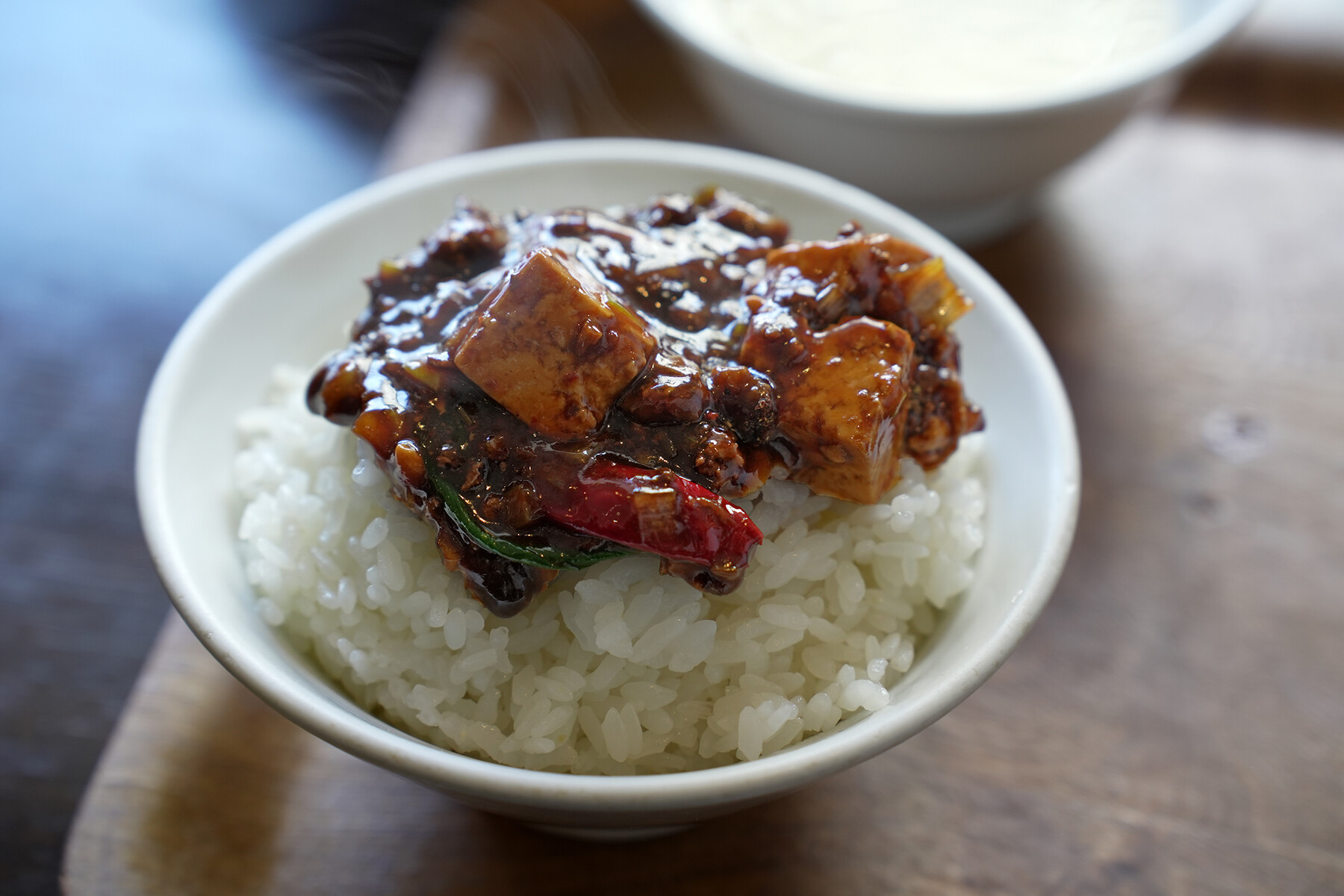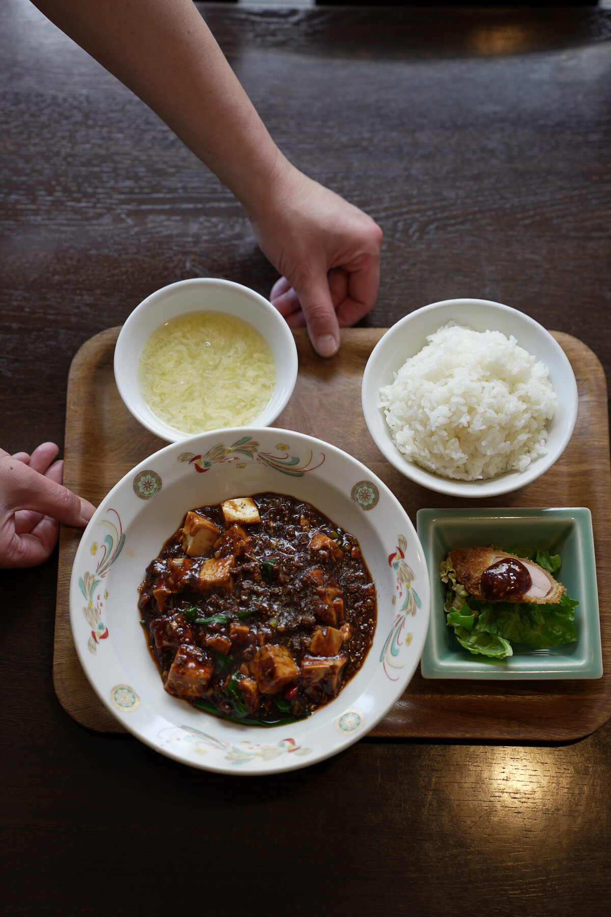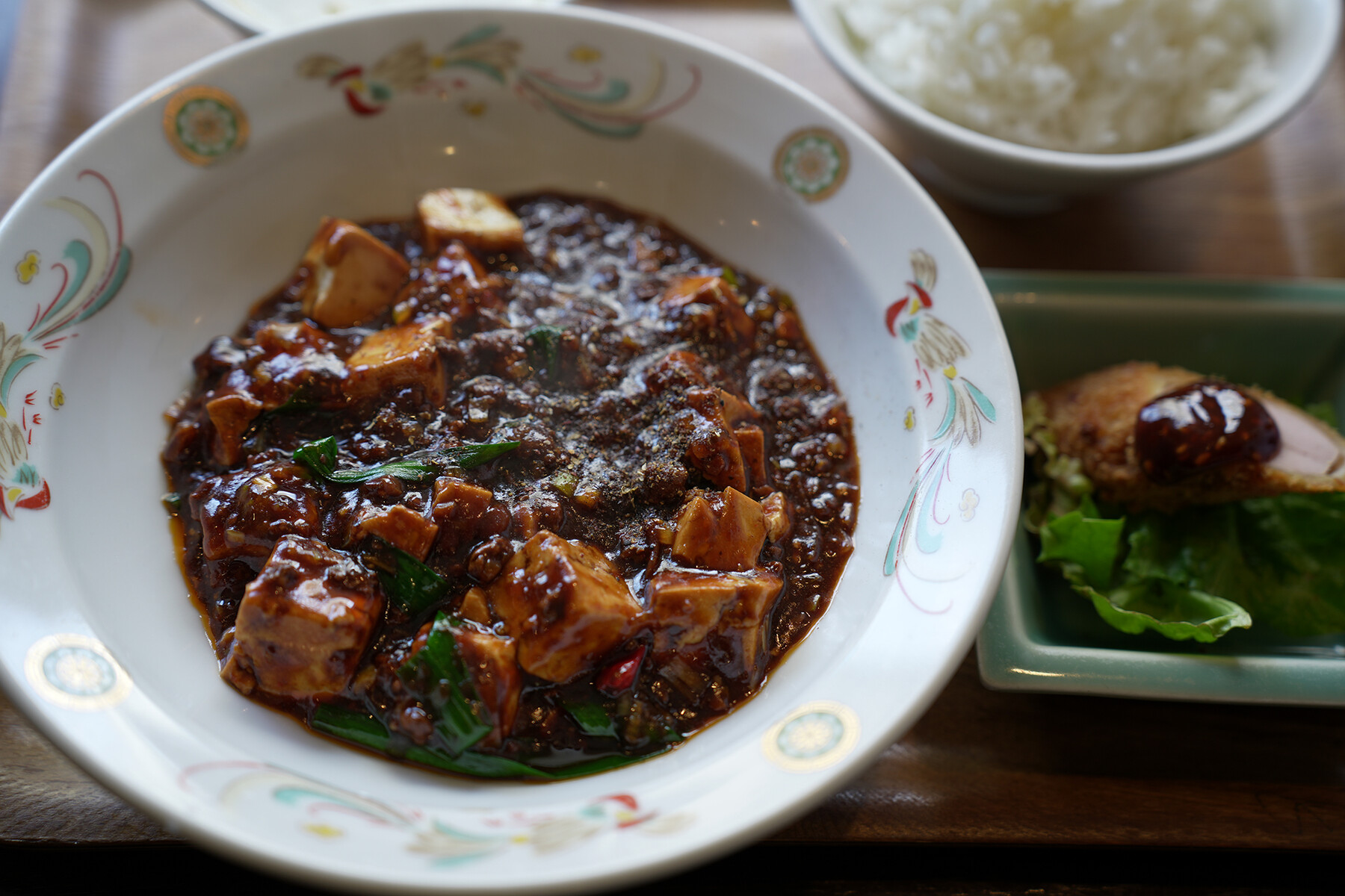 【杏仁荘】の今週の週替わり“牛スジ麻婆豆腐定食”が売り切れてて、それでも麻婆豆腐の口になってたので通常メニューの麻婆豆腐定食をいただきました。牛スジ麻婆豆腐定食は数量限定なので開店からドドドーって注文入るみたい。牛スジ麻婆豆腐定食が売り切れと聞いて帰るお客さんもいたらしい。牛スジ麻婆豆腐定食目当てで来るお客さんってSNS見て来るんだろうけど、どんだけ見た目でのパンチ力あるかってことよね。SNS的に映えるってやつではなくて、直接的に脳みそを刺激して食欲をそそるやつやな。牛スジ麻婆豆腐定食って名前聞いただけでそそられるもんね。ご飯がススムくんやろね。食べたかった。