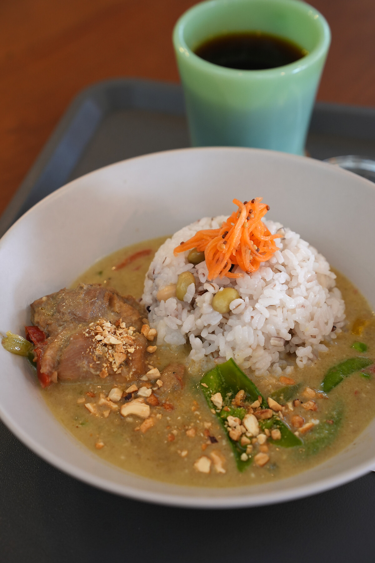 お昼に【ホピ珈琲】でグリーンカレーと珈琲飲みがら日曜日の打ち合わせ。先週日曜日に雨で中止した日帰りキャンプのリベンジしたいぞ。